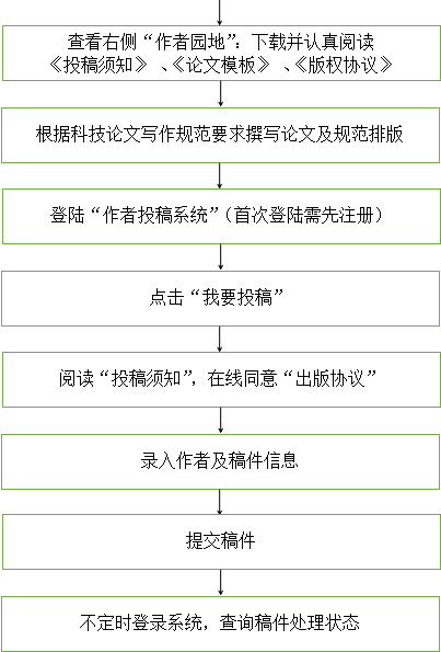 登陆青岛科技大学学术期刊网站,选择“学报(自然科学版)作者投稿系统”,进入采编系统网站进行投稿,具体操作流程如下:作者投稿系统